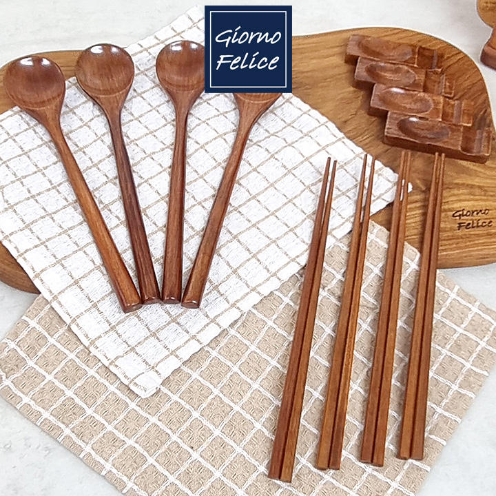[Giorno Felice] Premium Lacquered Wooden Spoon and Chopstick Set4 Korean Style wood spoon and chopsticks set Perfect For Gift
