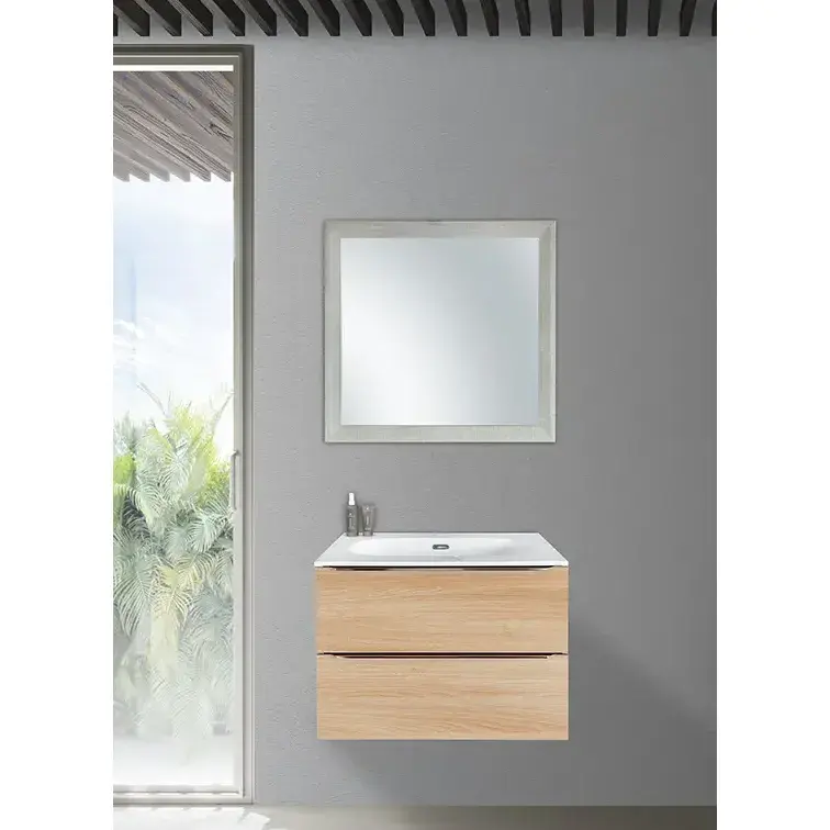 "TRIESTE" wall-mounted bathroom furniture in natural oak 80 cm with standard ceramic sink