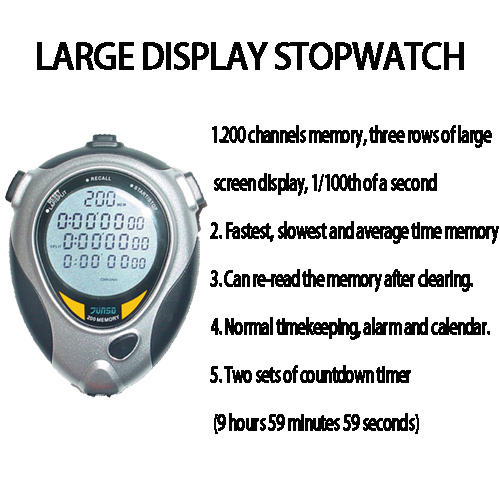 Cronometro a 0.01 cronometro a tre file 200 di memoria professionale cronografo sportivo portatile Stopawtch metronomo del calendario