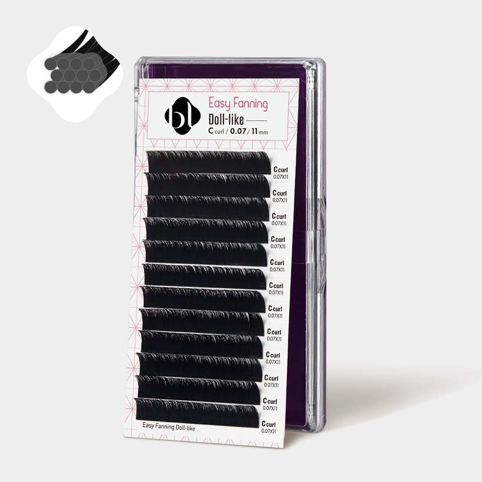 Ciglia Finte Coreane in PBT Sintetico Effetto Bambola 0.07, Facili da Applicare, con Curvatura Naturale (BC CD D), Lunghezza Mista 20mm, Confezione in Scatola/Vassoio