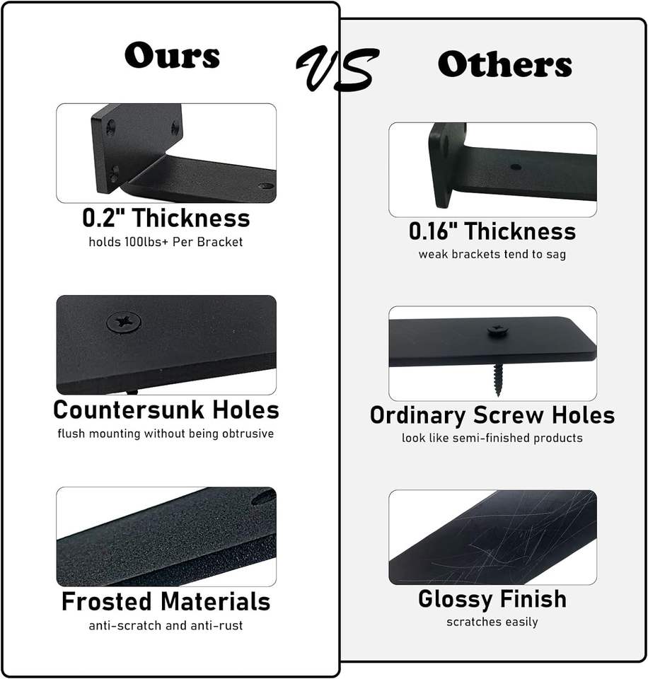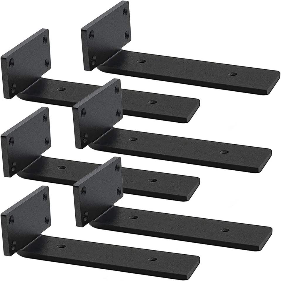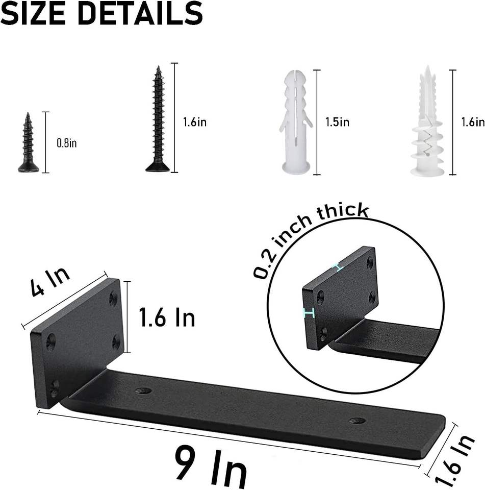 Supporto a Parete a Forma di L Nero da 9 Pollici, Spessore 0,2 Pollici, Mensole Fluttuanti in Acciaio Nascoste, Staffe Invisibili per Mensole