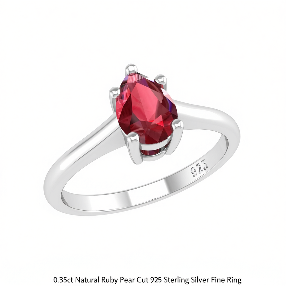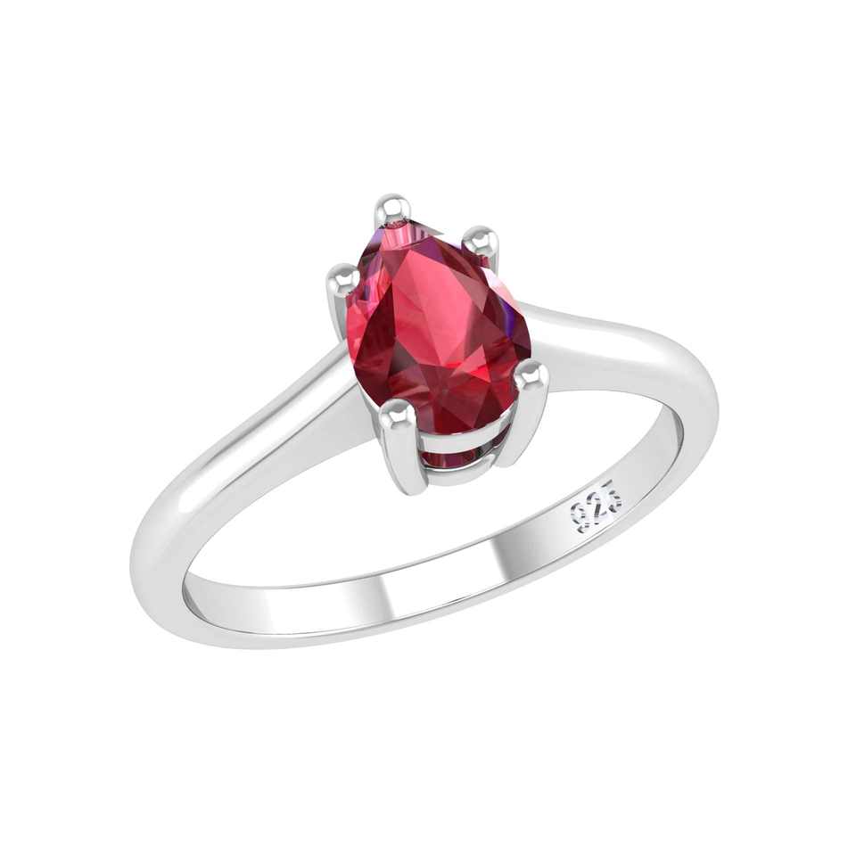 Anello di fidanzamento classico in argento sterling 925 placcato argento con rubino naturale taglio a pera da 0,35 ct e montatura a griffe