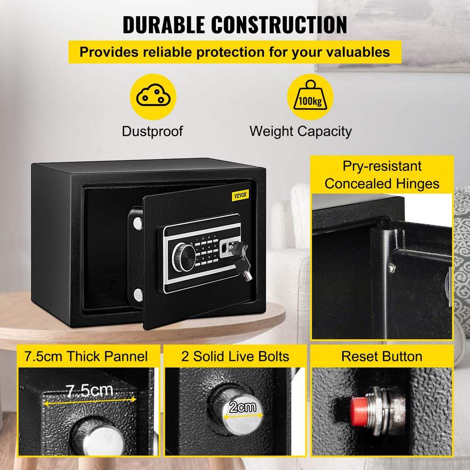 Cassaforte in Acciaio Ignifugo da 0,8 Piedi Cubi con Tastierino Digitale e 2 Chiavi Q235 per Conservazione di Denaro e Gioielli con Accesso Tramite Impronta Digitale