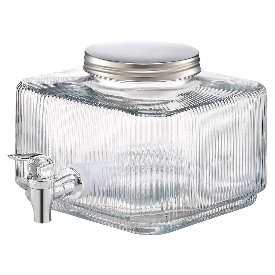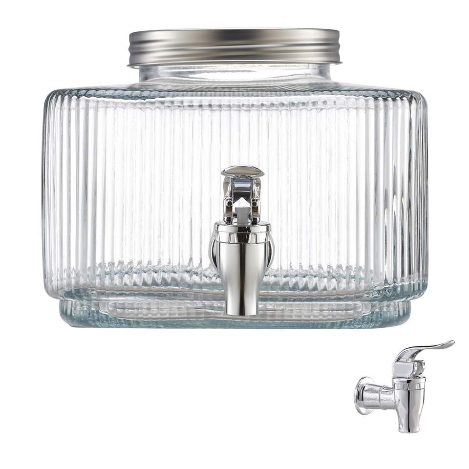 Dispenser per Bevande da 0,8 Galloni con Coperchio Antigoccia, Erogatore in Vetro per Succhi, Ideale per Feste, Tè Freddo e Bevande al Gusto di Limone