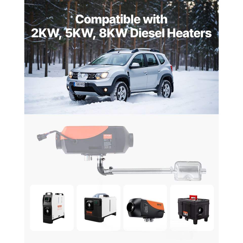 0.98 Inch 201 Stainless Steel Exhaust Pipe Tube Elbow Connector for Diesel Heater 2 Clamps for 2KW 5KW 8KW Parking Heater