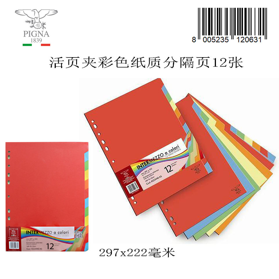 0223440AS Divisori per Raccoglitori Carta Colorata 12 Fogli 297x222mm 160g Cartoleria all'Ingrosso