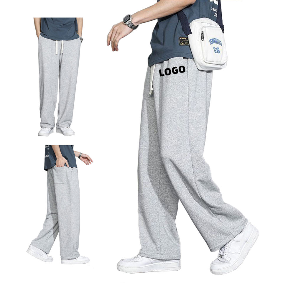 Pantaloni sportivi personalizzati grigi pantaloni larghi con coulisse elasticizzati in cotone oversize pantaloni della tuta larghi da uomo