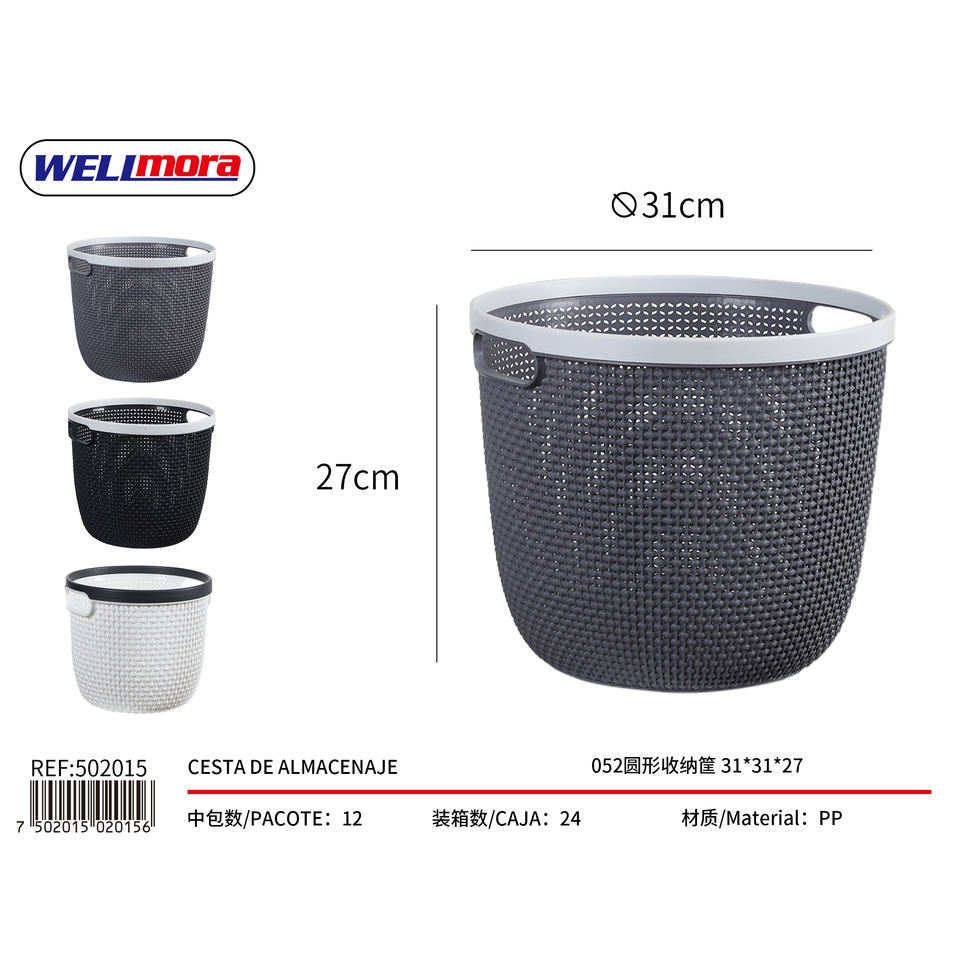 Cesto portaoggetti Welimora 31x31x27cm ovale in PP intrecciato con manici per l'organizzazione domestica
