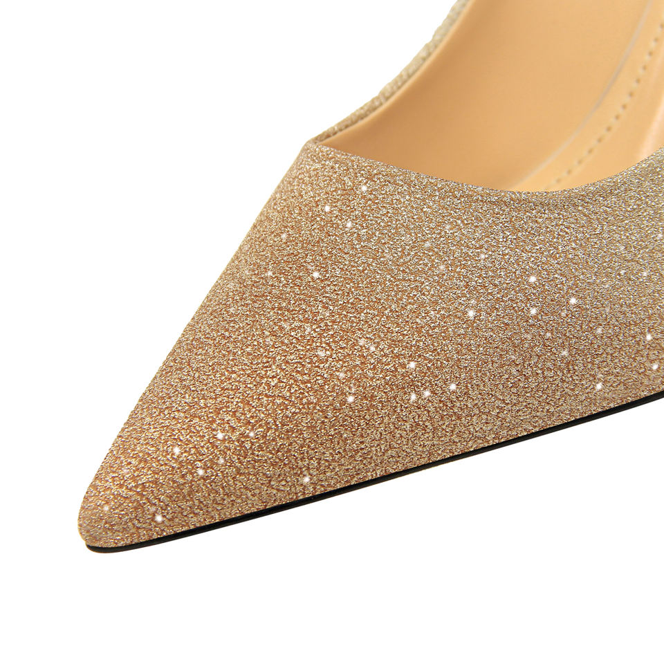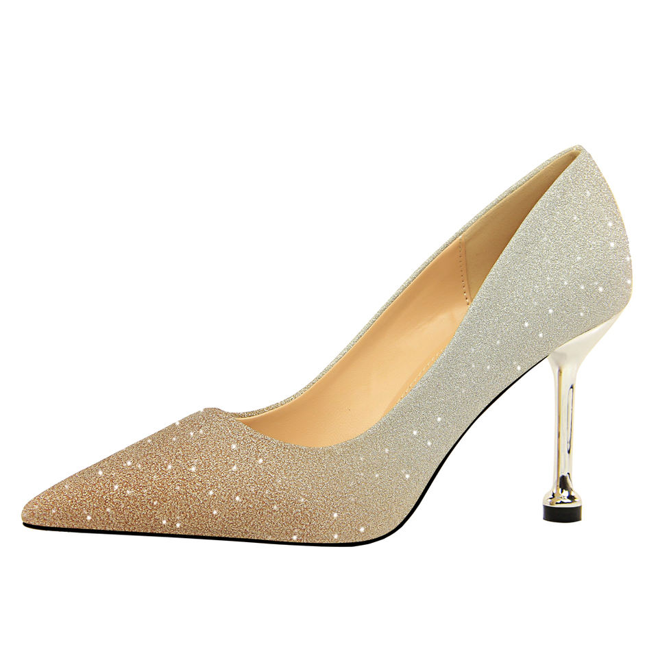 0755-1 Fashionable Stiletto High Heel Light Lip Pointed Toe Shiny Gradient Monochromatic Matching Color High Heel for Women