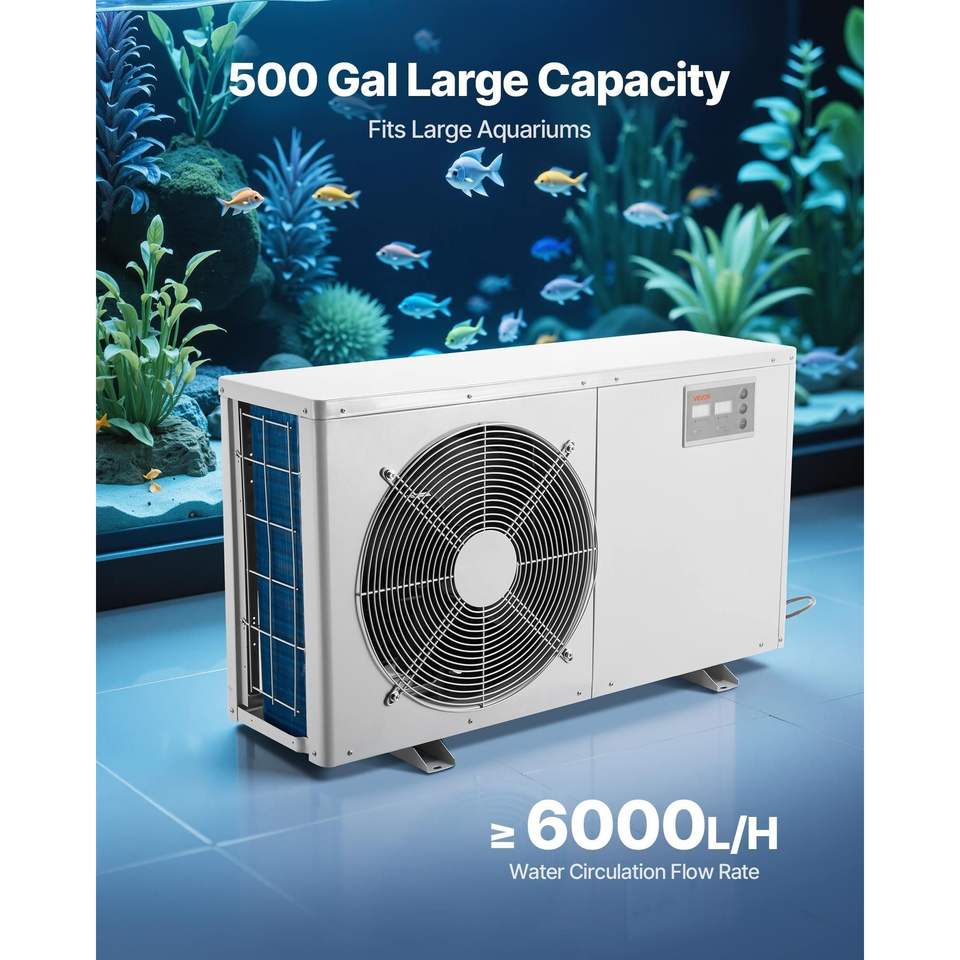 Refrigeratore d'Acqua da 1-1/2 HP per Acquari da 500 Galloni, Raffreddamento Rapido per Idroponica, Vasche per Pesci, Axolotl, Silenzioso