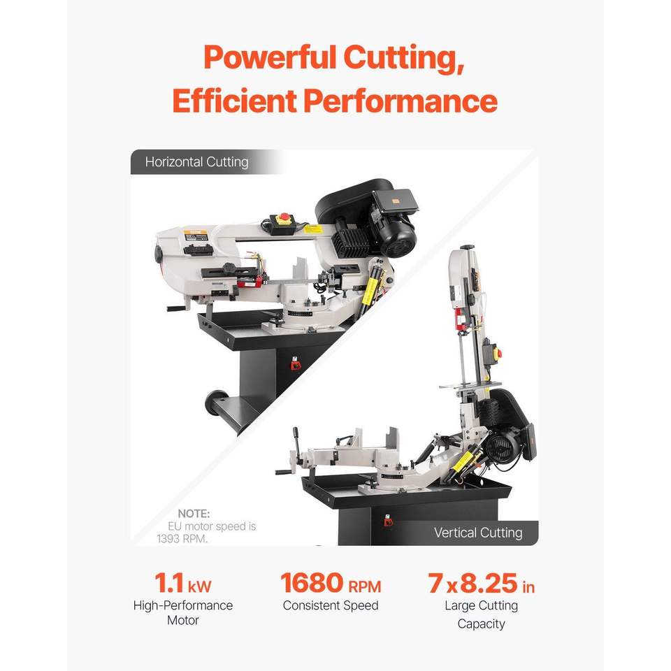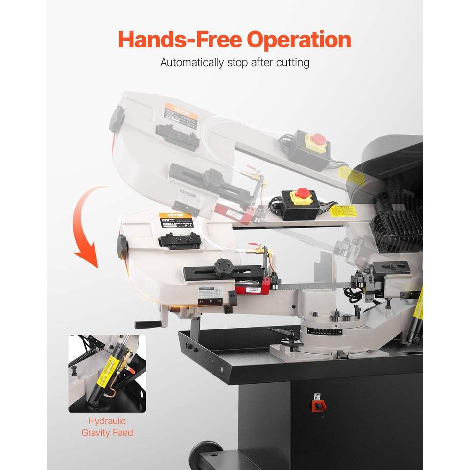 Sega a Nastro Orizzontale per Metallo con Motore da 1,1 kW, Taglio Verticale 0-45°, Capacità di Taglio Rettangolare 7 X 8,25, 110/220V