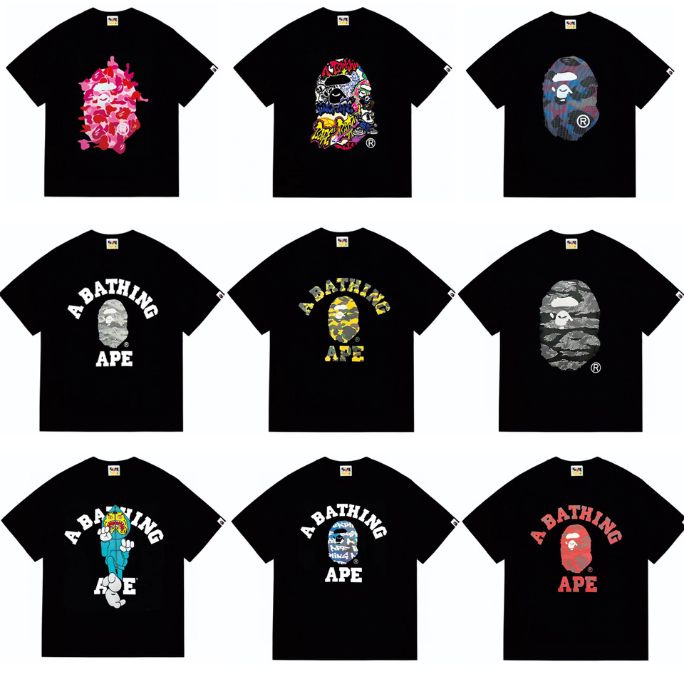 1.121Dongxi 2025 1:1 Bapees Hot Sale Stylish Men's Loose Printed T-Shirts Multi Pattern Stock 100% Cotton 260 Grams Men T-shirt