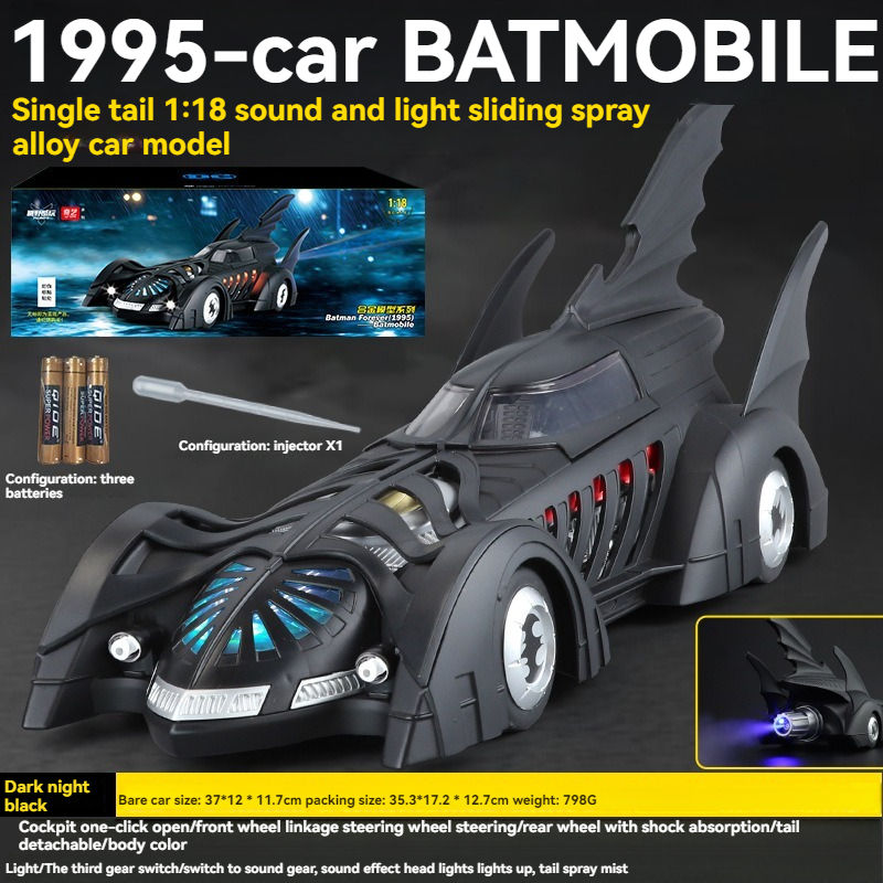 1:18 Car Model Licensed Bat Man 1995 Mobile Alloy Car Model Simulation Cars Sound and Light Collection Metal Toy Model Vehicle