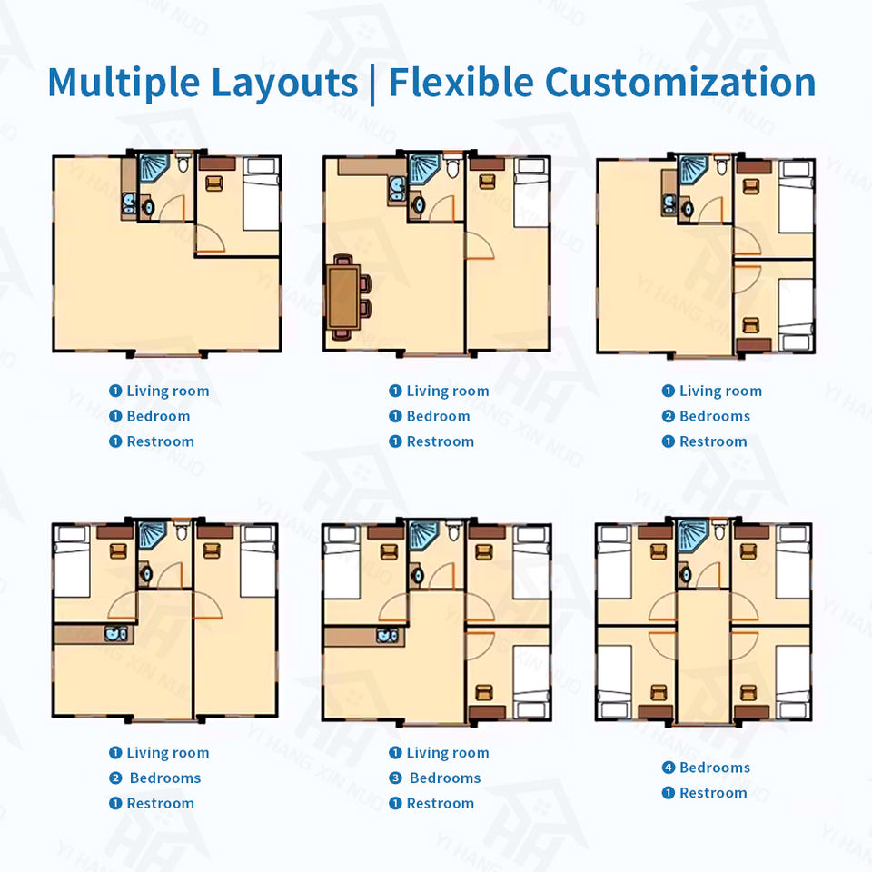 Case Container Portatili da 1, 2, 3, 4 Camere da Letto, Mini Case Prefabbricate, Casa Prefabbricata Modulare di Lusso con Ristorante