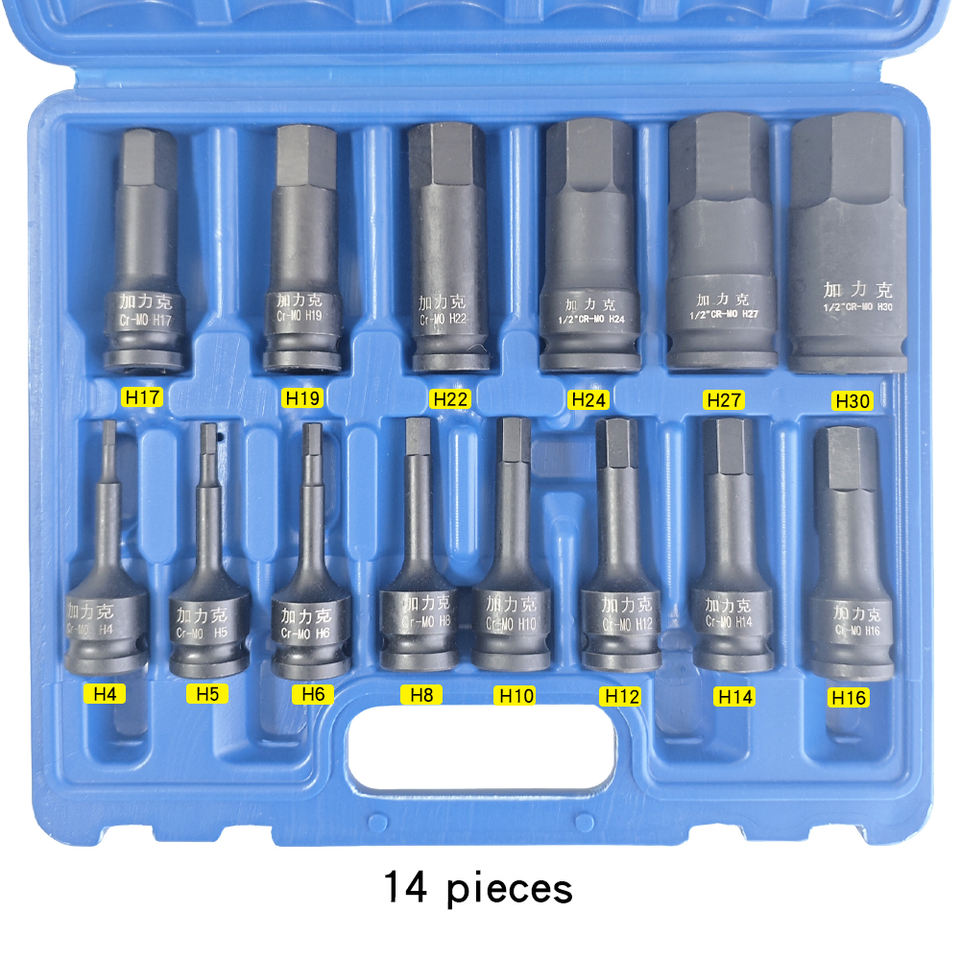 Set di Chiavi a Bussola Esagonali da 1/2 Pollice H4 H5 H6 H8 H10 H12 H14 H16 H17 H19 H22 H24 H27 H30, 14 Pezzi, Lunghezza 78mm, in Acciaio Cr-Mo per Uso Industriale