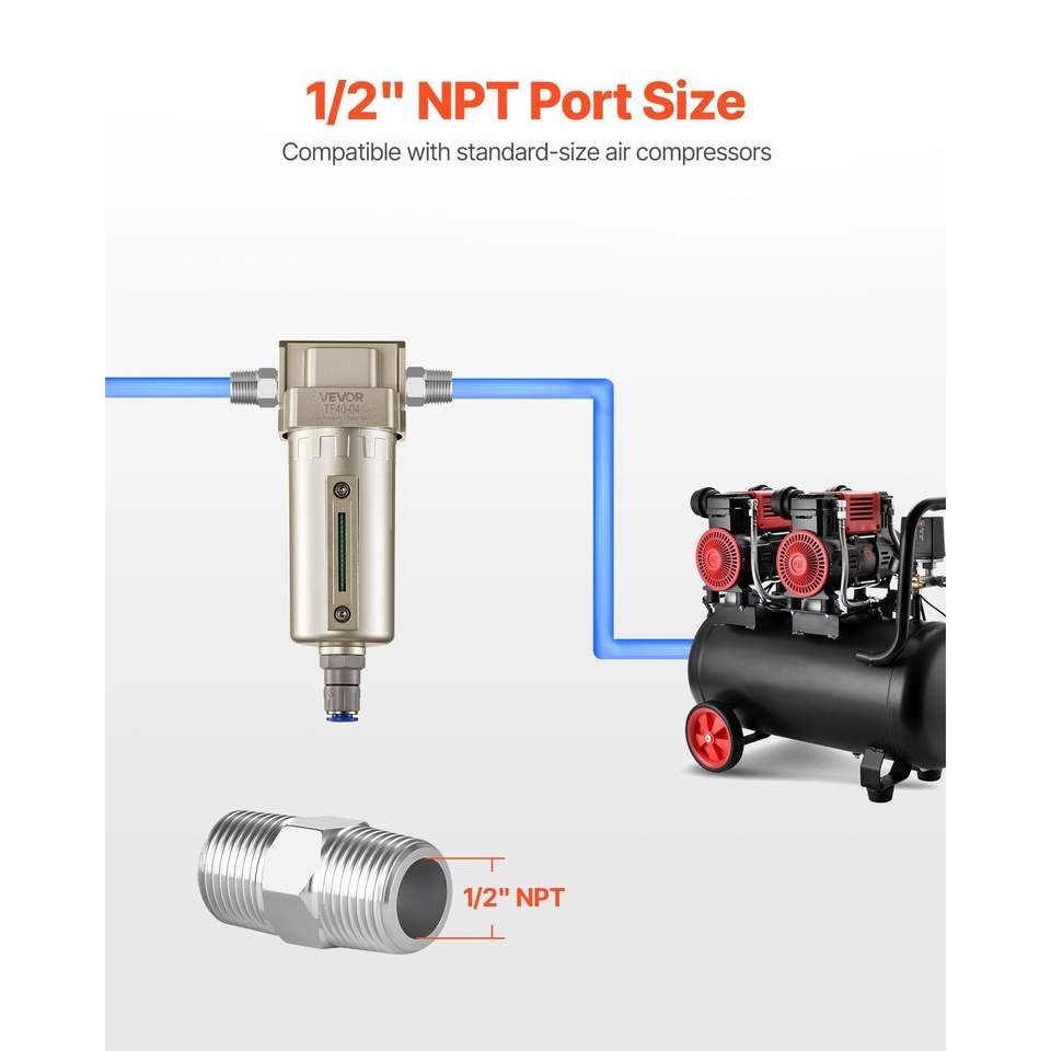 Filtro Separatore Acqua per Compressore d'Aria 1/2'' NPT, 5 m, Elemento Filtrante in Ottone con Scarico Automatico, Ricambi per Compressori Industriali