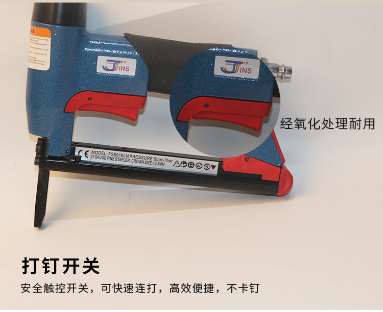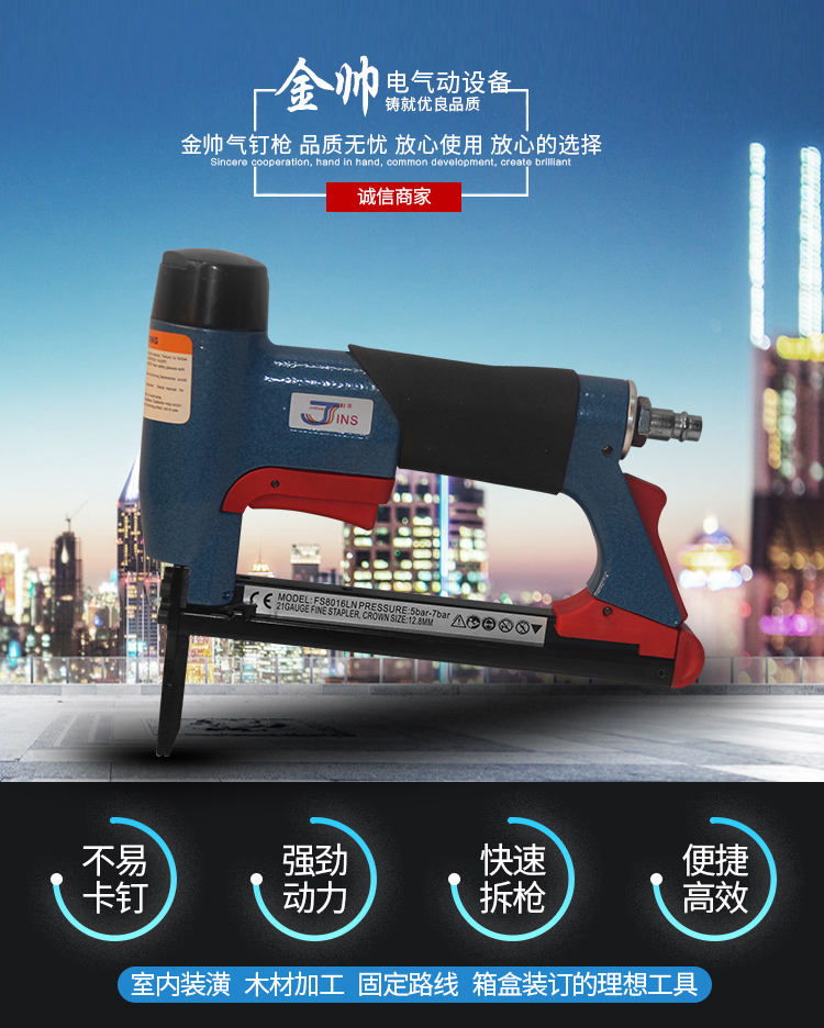 1/2'' Wide Crown Stapler FS8016LN, Pneumatic Staple Gun for Heavy Duty Wooden Work with Long Nose, Long Nose air Stapler 380/16