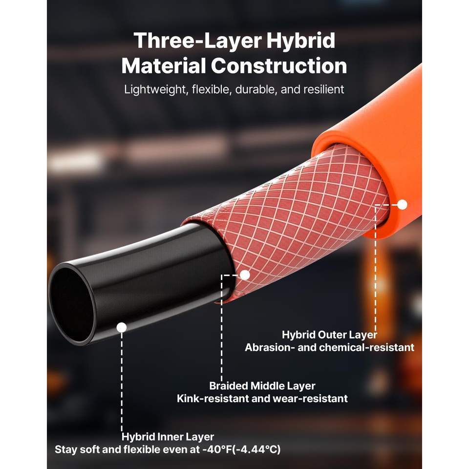 Tubo Pneumatico Ibrido 1/2'' x 100ft con Raccordo Maschio in Ottone Massiccio, Leggero e Resistente alle Piegature