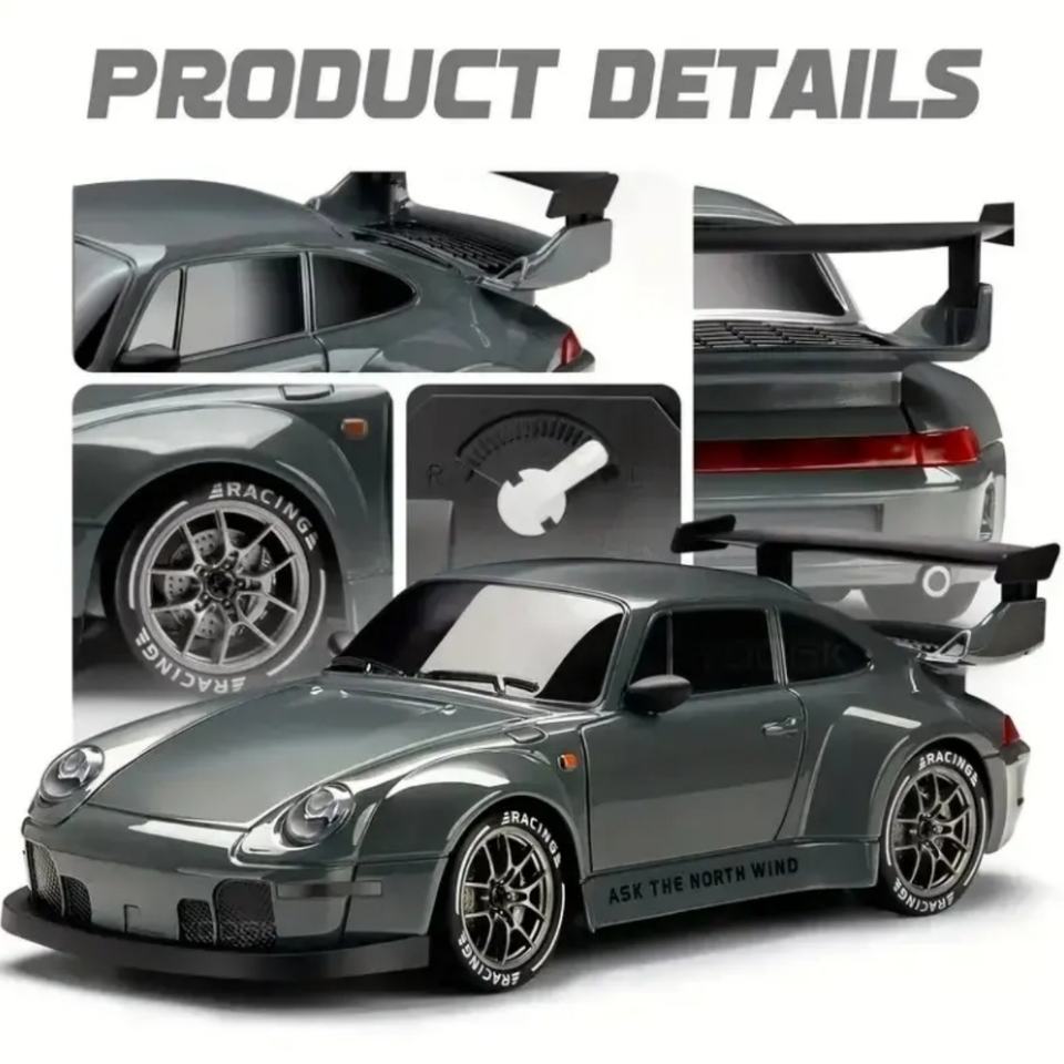 Auto Telecomandata Porsche 1:24 4WD, Modello di Veicolo da Drift 2.4GHz, Auto Sportiva da Corsa con Giroscopio, Luci LED, in Metallo, Portata 50m