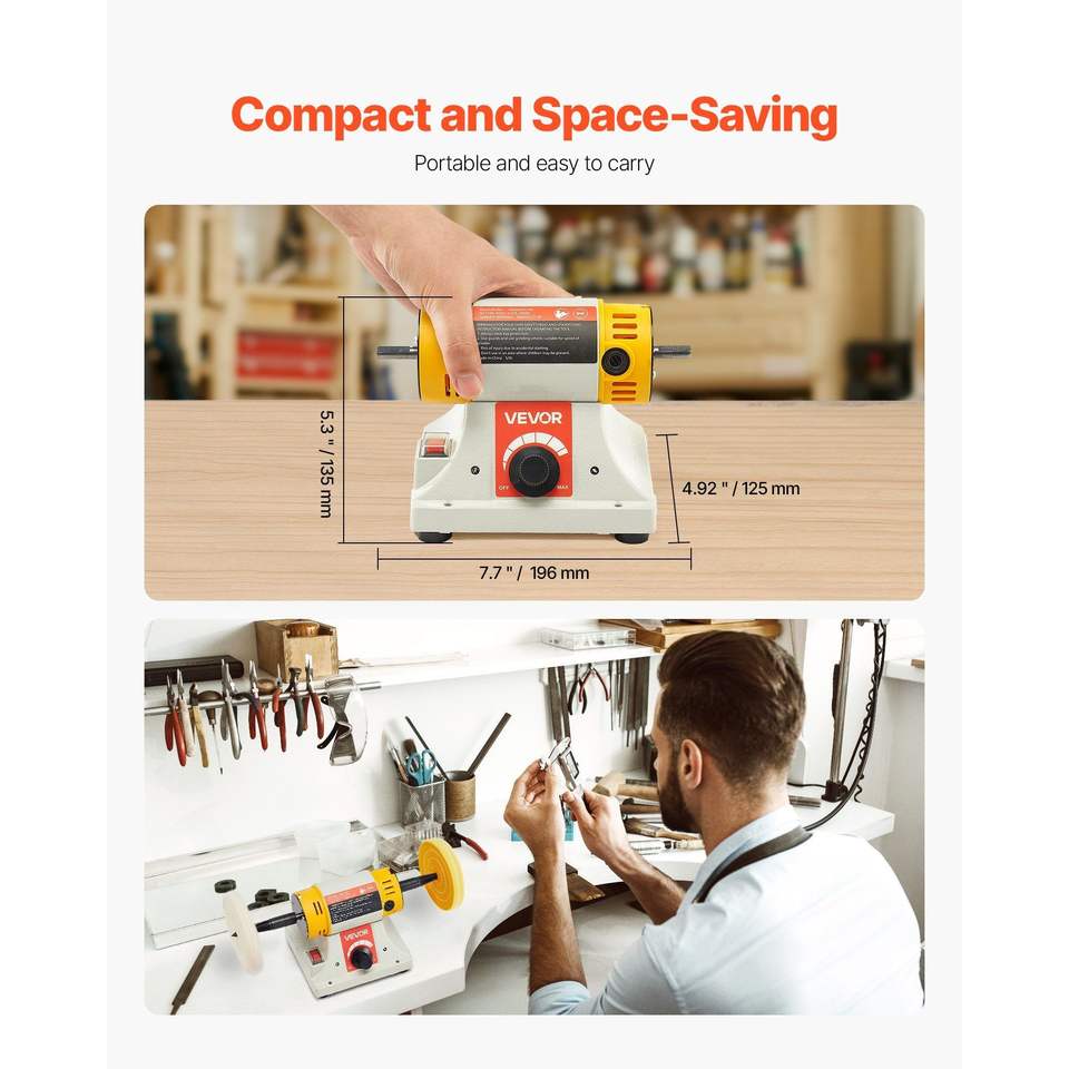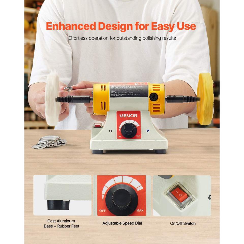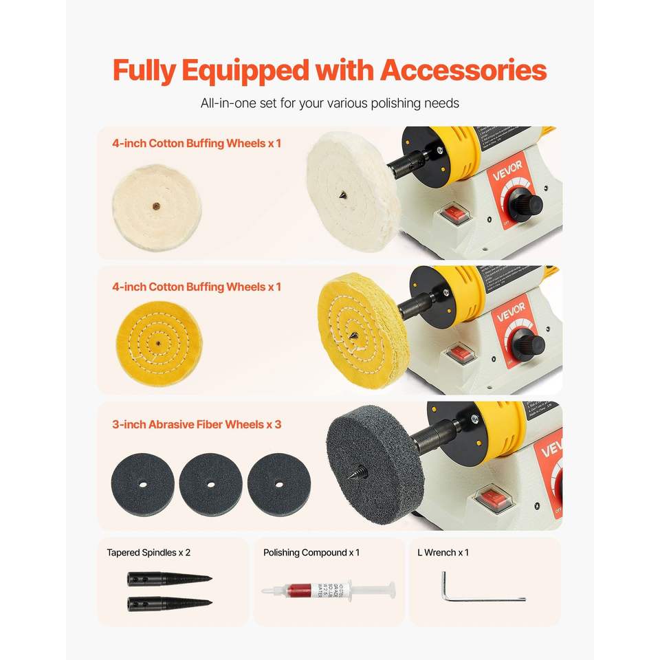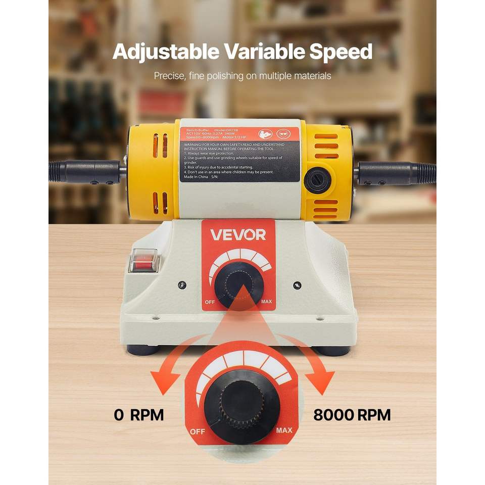 Lucidatrice da banco da 1/2 HP, 0-8000 RPM, per metalli, con 2 ruote in cotone da 4 pollici e 3 accessori da 3 pollici