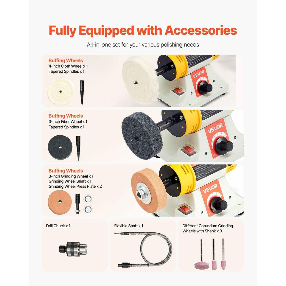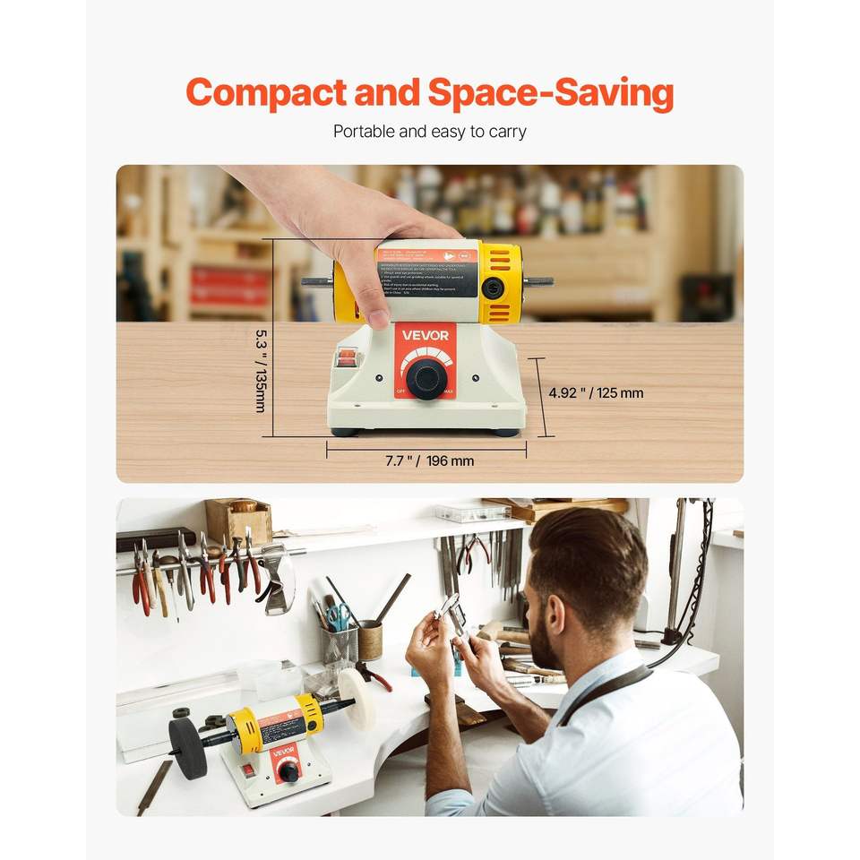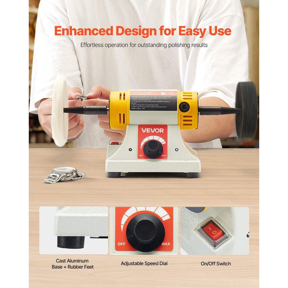 1/2HP Benchtop Polisher Grinder 0 8000RPM Metal Polishing Machine with 4\" Cloth Wheel 3\" Grinding Buffer Polisher for Metal