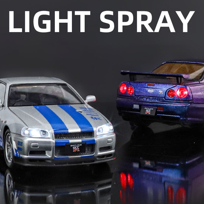 1/32 Nissan Skyline GTR 34 Skyline JDM Diecast Metal Miniature Race Toy Car Model Pull Back Sound Light Collection Gift for Boy