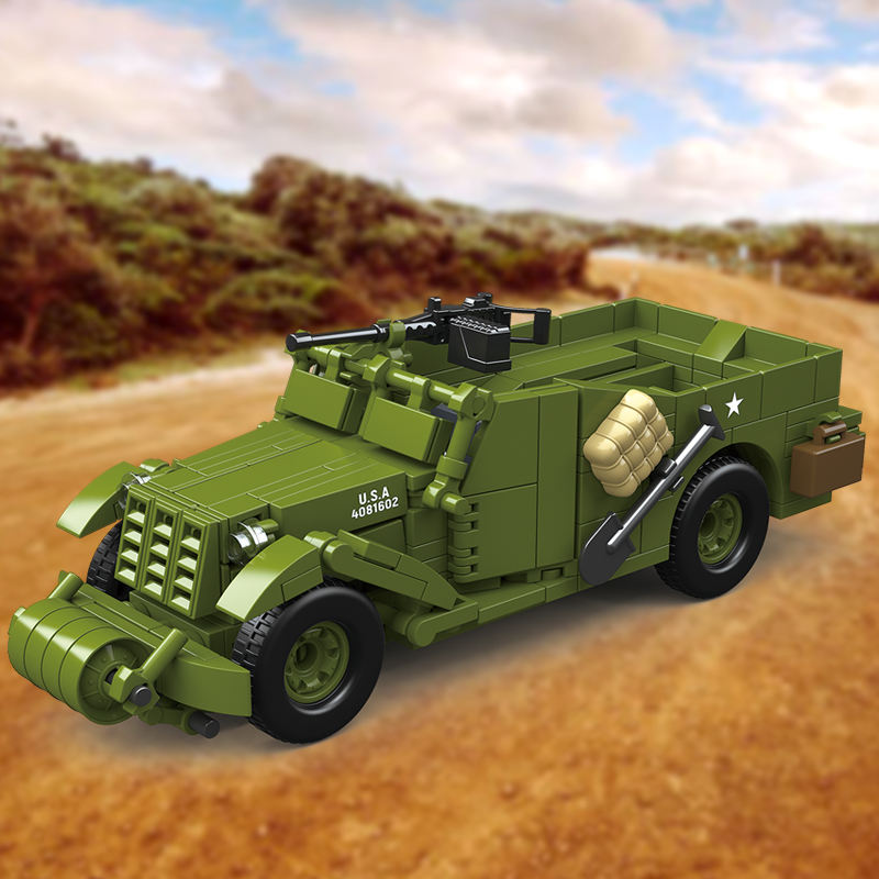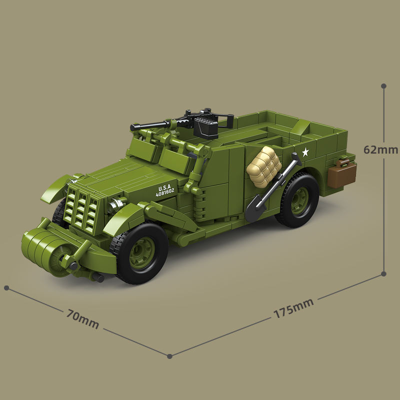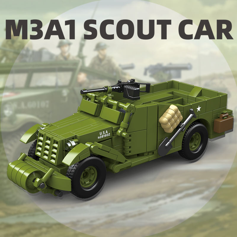 1/35 guerra mondiale 2 armi da fuoco con equipaggiamento militare Ww2 kit modello di plastica in mattoni 1/35 scala M3A1 Set di blocchi di costruzione per auto Scout