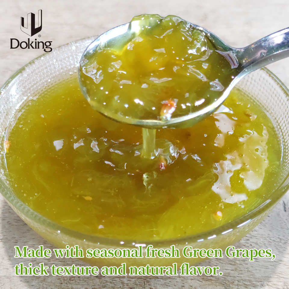 Confezione da 1,3 kg di marmellata concentrata di uva verde vera, pronta da mangiare, in busta e scatola, prodotta in fabbrica, molto venduta.