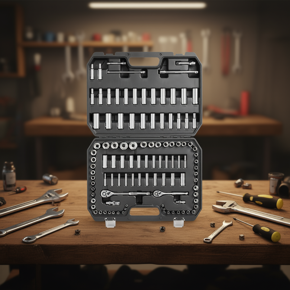 Set di chiavi a bussola a cricchetto da 1/4 e 3/8, 6 punte, 106 pezzi, metrico e SAE, profondo e standard, da 5/32 a 1 pollice (5-19 mm), con custodia, modello D0100HAYTR7