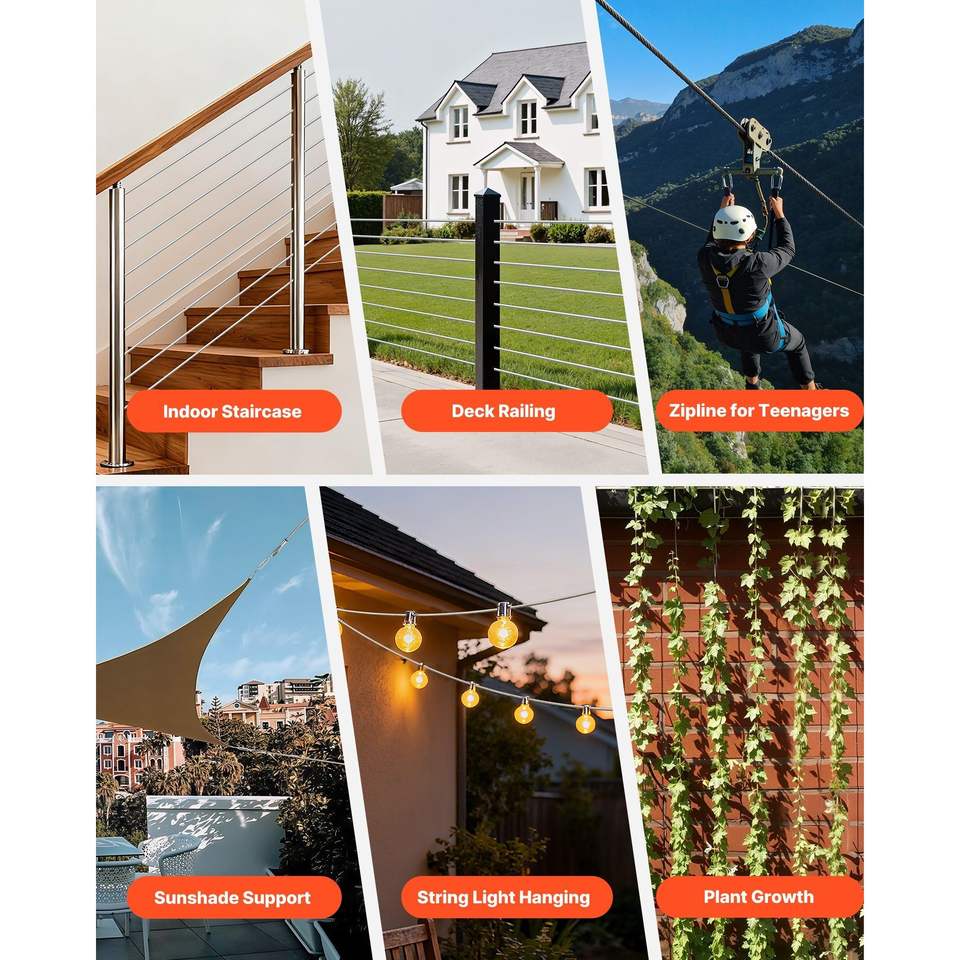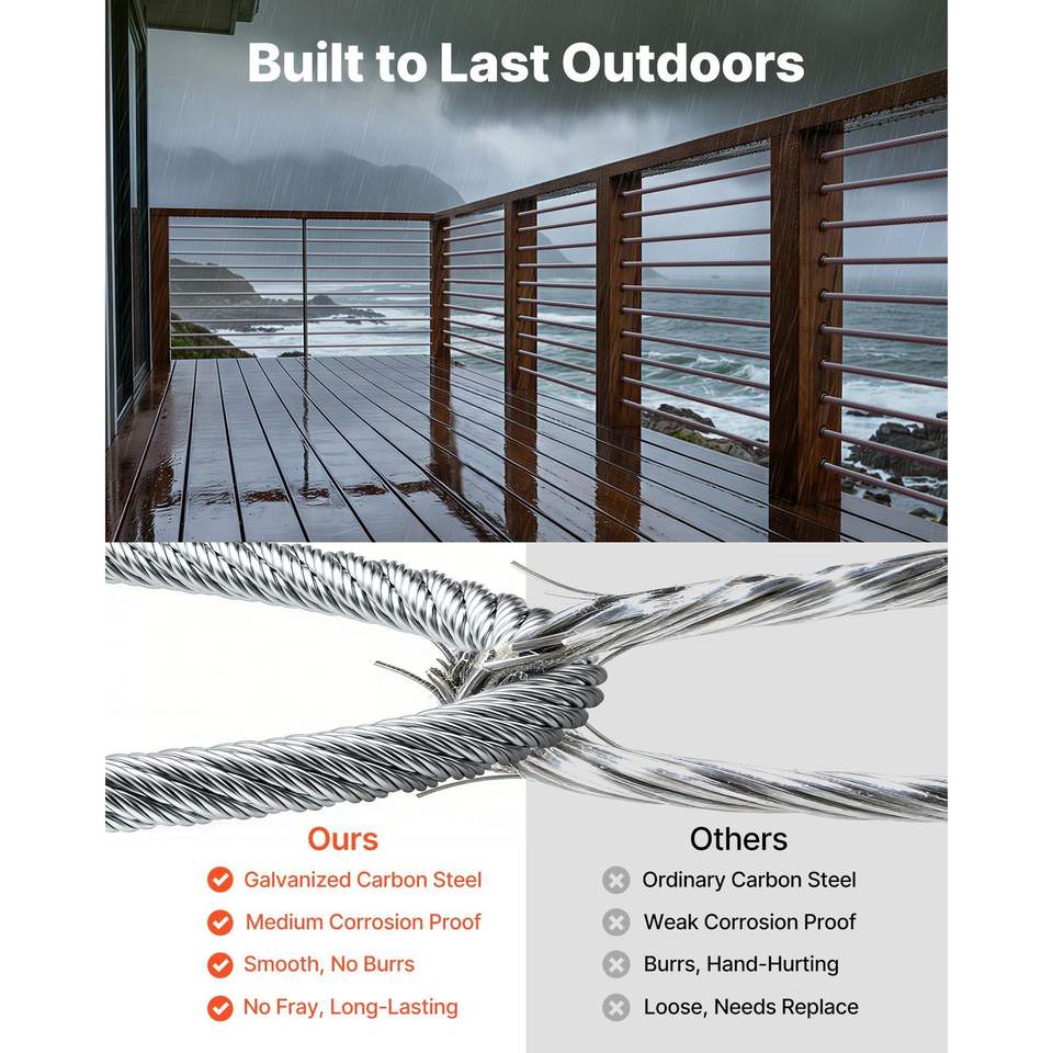 Cavo in Acciaio al Carbonio Zincato da 1/4 di Pollice, Lunghezza 250 Piedi, Resistenza alla Rottura 7000 Libbre, 7 X 19 Fili, Rivestimento in Zinco