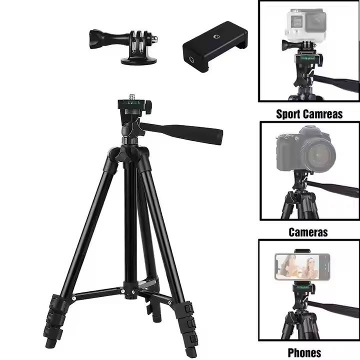 Treppiede Leggero in Alluminio 1/4 Regolabile con Telecomando Wireless/Supporto per Telefono/Adattatore GoPro per Fotocamera/Proiettore Streaming Live