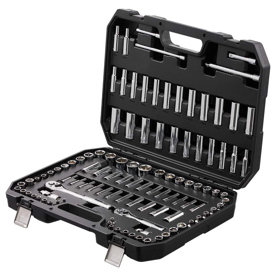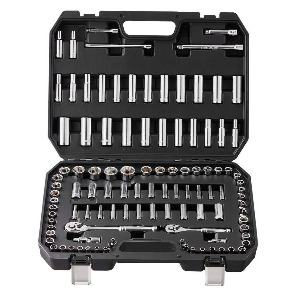 Set di chiavi a bussola a cricchetto da 1/4 e 3/8 di pollice, apertura a 6 punte, 106 pezzi, set di utensili metrici SAE, set di bussole profonde Standout