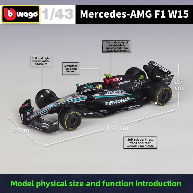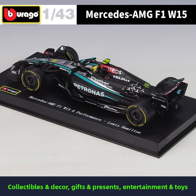 Modellino Auto da Corsa Formula 1 in Scala 1:43, Argento 2024, in Lega Pressofusa, Stile F1 con Ruote Aperte, Espositore in Acrilico, da Collezione, Vendita all'Ingrosso