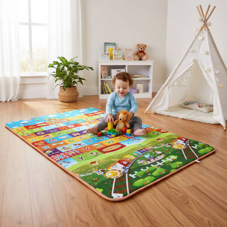 1.5*1.8*1CM ABC Reversible Cotton Floor Mat Washable Square Print for Bedroom Living Kids Beach-20PC/CS Bagged Home Essentials