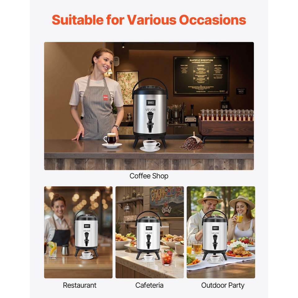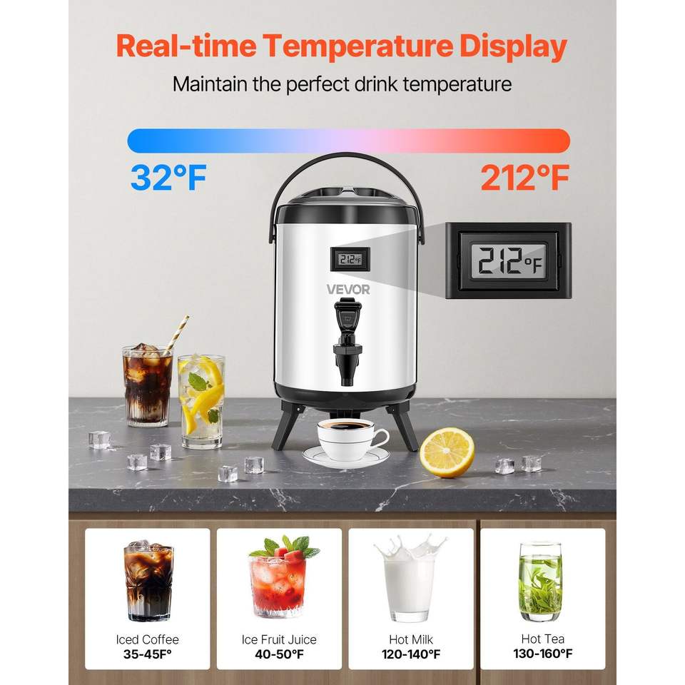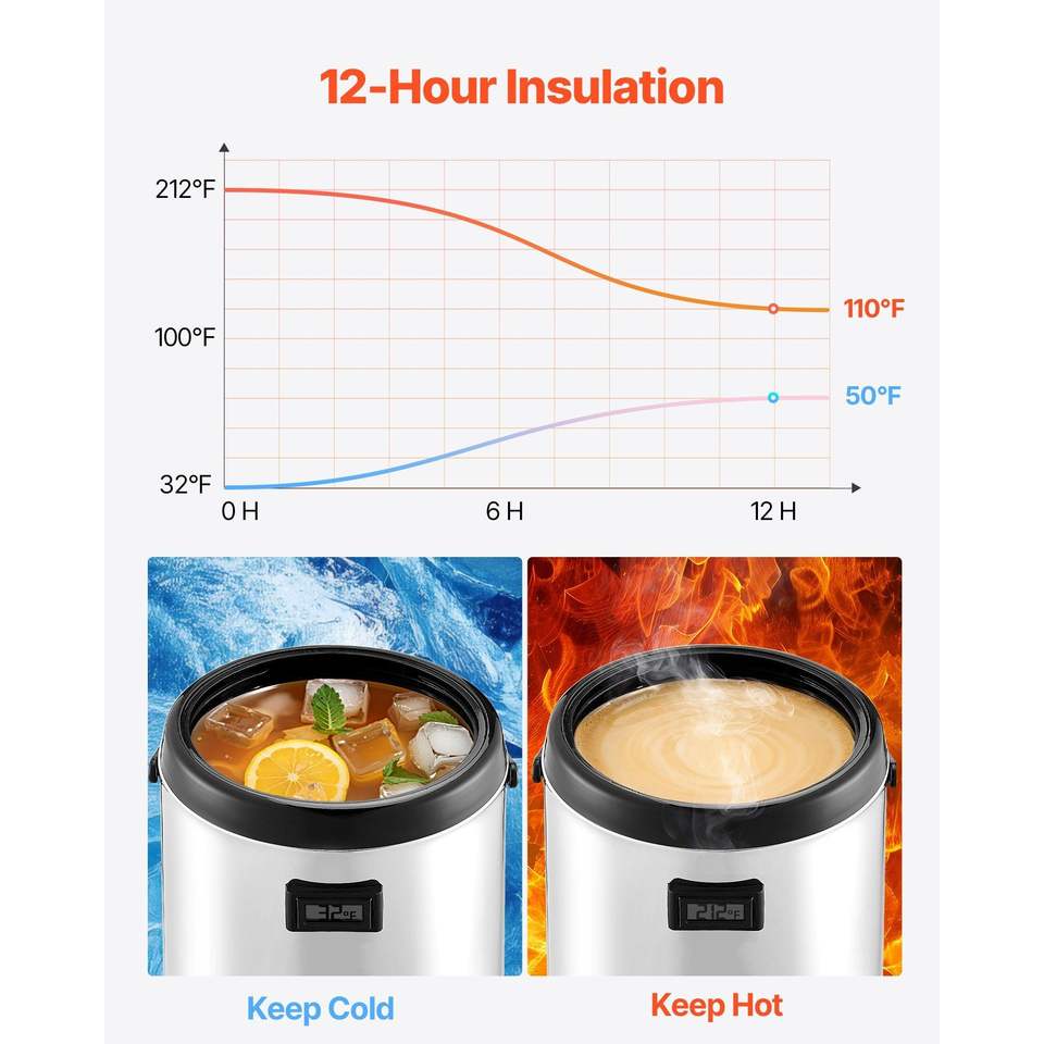 Dispenser Termico per Bevande in Acciaio Inox da 6L (1,5 Galloni) con Rubinetto e Display della Temperatura per Bevande Calde e Fredde