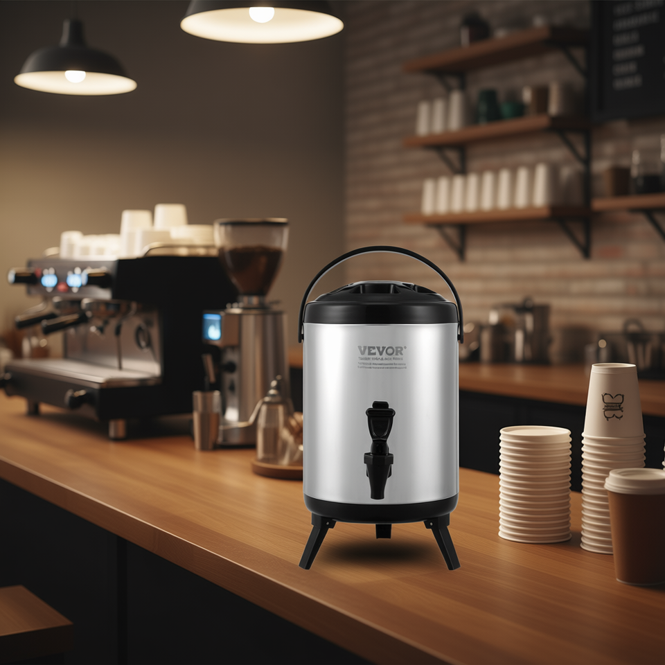 Dispenser per bevande isolato in acciaio inox da 1,5 galloni con rubinetto per bevande calde e fredde, uso commerciale