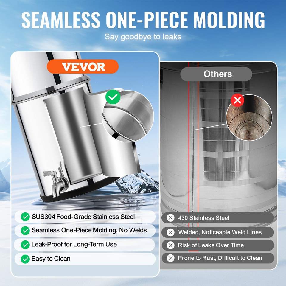 Sistema di filtraggio dell'acqua da banco in acciaio inossidabile 304 da 1,5G, alimentato a gravità per esterni, efficace nel ridurre il piombo del 99%