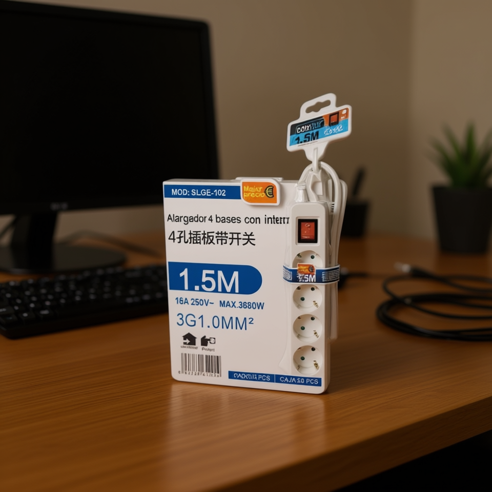 Prolunga da 1,5 m con 4 prese e interruttore, accessorio per gestione cavi, connettore a 4 basi