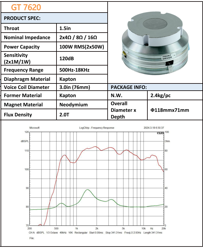 Driver a Doppia Bobina Mobile in Neodimio da 1.5 Pollici, Comparabile a JBL D2, 100W 120dB 2x76mm, per Line Array PA Professionale GT7620