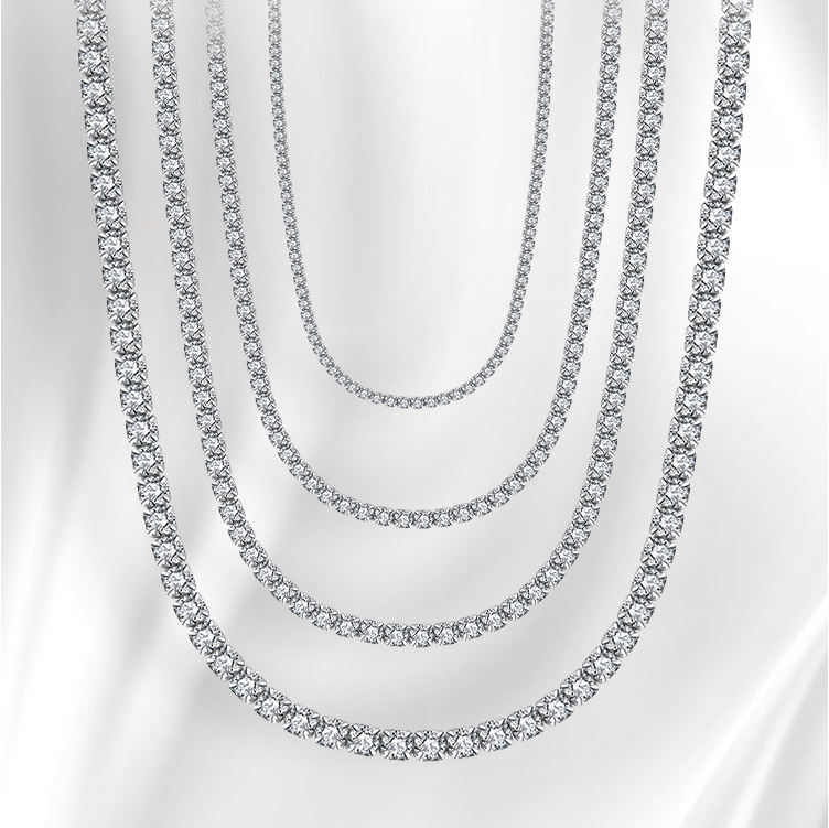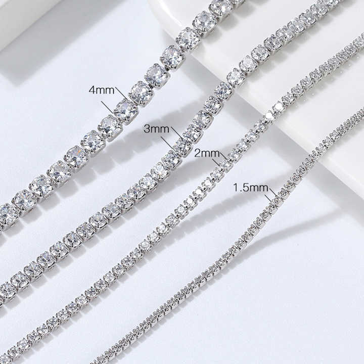 1.5mm - 4mm Fine Jewelry Choker Round Cubic Zirconia Cz 925 Sterling Silver Tennis Chain Necklaces