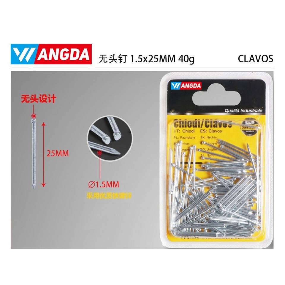 1.5x25MM 40g Headless Carbon Steel Nail Stainless Steel Shank Ring Common Brad for Construction Durable and Versatile