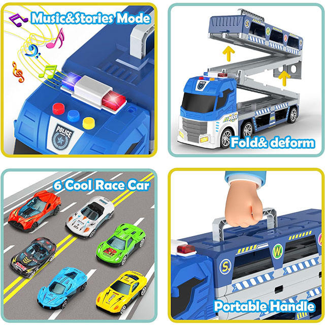 1:64 pieghevole catapulta auto portaoggetti eject ad alta velocità polizia macchina giocattolo lunghezza 1.30m vagone con suono di luce