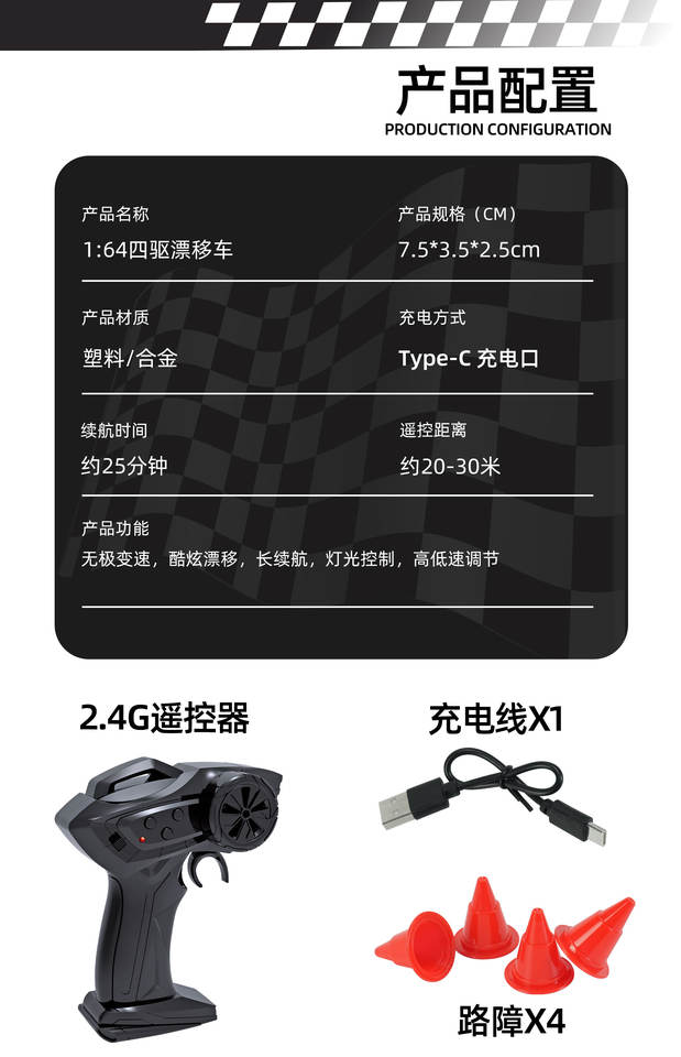 Descrizione:1:64 Mini Desktop 4WD Drift Car