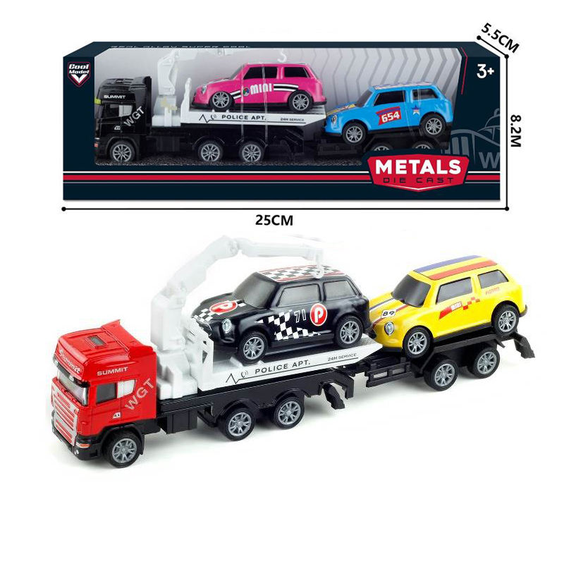 1:64 Scale Alloy Flatbed Truck with Mini Cars, Die-Cast Metal Transport Vehicle Toy Set for Kids Collection Gift