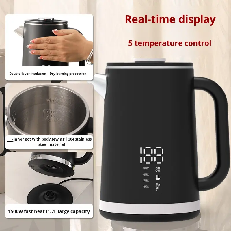 1.6L Electric Water Kettle 304 Stainless Steel 5 Heat Preservation Double-Layer Insulation Electric Kettle