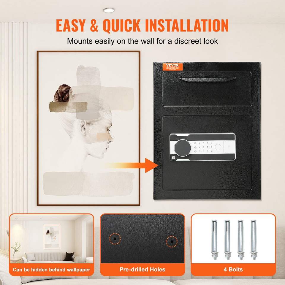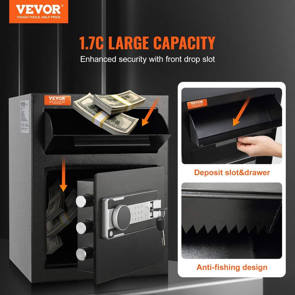 Cassaforte Elettronica con Codice 1.7 Cub con Fessura per Deposito, 2 Chiavi di Emergenza, 17.71 X 13.77 X 13.77, Cassaforte per Deposito Aziendale