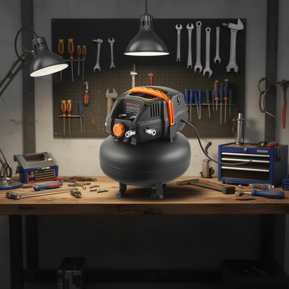 Air Compressor 6 Gallon 1.7 HP 2.3 CFM 90 PSI With Hose Kit For Workshop Use