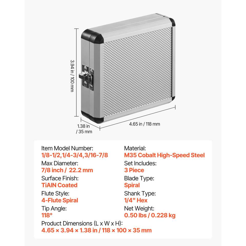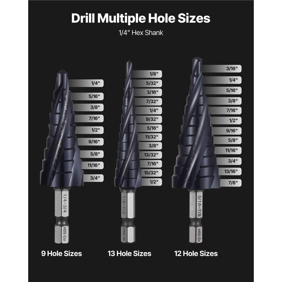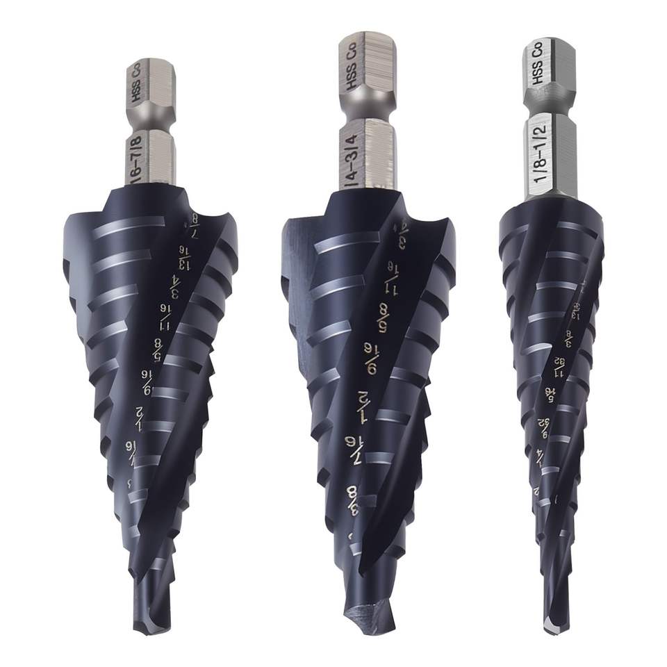 Set di punte elicoidali multiuso da 1/8 a 7/8 pollici, 3 pezzi con codolo esagonale da 1/4 di pollice, rivestimento TiAlN, acciaio HSS al cobalto ad alta velocità
