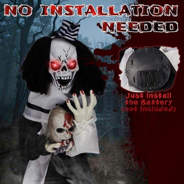 1.8ft Halloween Indoor Party Decorations Scary Clown Sound-Activated Creepy Haunted House Props for Table Garden Yard Lawn