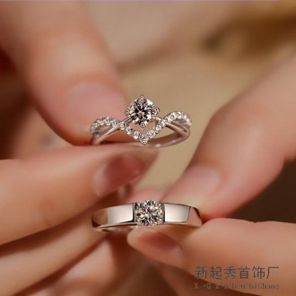 1 Carat 4 Claw Diamond Ring Cubic Zircon Crown Opening Half Love Ring for Men and Women